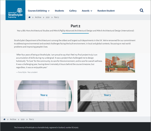 I designed the 2020 and 2021 showcase website for the Department of Architecture at the University of Strathclyde.